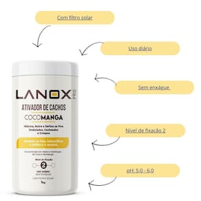 Ativador De Cachos Coco Manga Lanox 1kg Trihair Descrição: O Ativador de Cachos Cocomanga é a etapa que toda cacheada ama Sua poderosa combinação promove hidratação profunda, nutrição intensa e modelagem perfeita para cachos deslumbrantes. Sua textura auxilia na definição de fitagens e penteados, mantendo os cachos firmes, volumosos, brilhantes e macios. Benefícios: Hidratação e Nutrição Definição de Fitagens e Penteados Volume e Brilho Duradouros Cachos Macios e Firmes Principais Ativos: Óleo de Coco: Nutrição e Brilho de Manga: Definição e Maciez Ácido Hialurônico: Hidratação e Modelagem Modo de Uso: Aplique o Ativador de Cachos Cocomanga mecha por mecha nos cabelos úmidos ou secos e flexione das pontas à raiz para formar cachos deslumbrantes. Para cachos mais soltos, apenas penteie. Não é necessário enxaguar. Frequência de Uso: Diário Ph: 5,0 - 6,0 Experimente o Ativador Cocomanga para cachos incrivelmente definidos, nutridos e deslumbrantes. Mantenha a hidratação, volume e maciez todos os dias, sem perder a modelagem perfeita. Marca: Não Informado Ean: 7899109101335