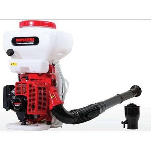 Eletro Semb - Assistência e Autorizada Kawashima / Nakashi Para aplicação de pós e líquidos, inclusive na vertical Acompanha Bico UBV - ideal no combate ao mosquito da dengue Com potente motor 2 tempos de 79,4cc, tanque químico e de combustível para grande autonomia, pode ser Utilizado em aplicações de produtos químicos em pó ou líquidos, com alcance de até 16 metros. Tem eficiente sistema anti-vibratório para maior conforto do operador. Comandos de fácil operação. Tipo: Atomizador costal Tipo de bomba: Centrífuga Vazão máxima - pó: 6 kg/min Vazão máxima - líquido: 5 kg/min Capacidade do tanque químico: 20 L Alcance máximo: 16 m Motor: Kawashima Tipo do motor: Monocilíndrico, 2T, refrigerado a ar Cilindradas: 79,4 cc Potência: 5,8 HP 7000 rpm Capacidade do tanque de combustível: 1,3 L Dimensões: 540 x 440 x 704 mm Peso líquido: 12,5 kg Posição de aplicação: Horizontal e vertical Para evitar problemas com a partida, ao término do uso, esvazie o compartimento de gasolina e deixe o motor apagar com o combustível que está no carburador caso não vá utilizá-lo no período de duas semanas ; Sempre utilizar gasolina nova, e não a armazenada em casa.