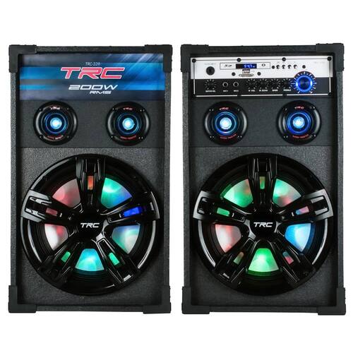 Fabricadas com 200 watts, a caixa de som TRC possui alto-falante de 10 polegadas que garante uma sonoridade limpa, entrada USB e leitor de cartão para dar opção de ouvir diversas playlists e iluminação frontal em LED com botão liga e desliga.