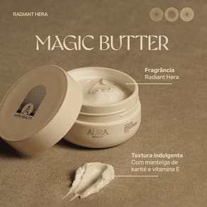 Aura Beauty Magic Butter Radiant Hera iluminadora desodorante corporal. Com notas florais encantadoras, Aura Beauty Magic Butter Radiant Hera oferece hidratação profunda com toque luminoso. A Iluminadora Aura Beauty Magic Butter Radiant Hera conta com fórmula cremosa e rica em ativos hidratantes, proporcionando uma sensação de suavidade, ao mesmo tempo que ilumina a pele com um brilho radiante e natural. Possui textura cremosa que penetra rapidamente na pele, sem deixar resíduos. Com fragrância floral envolvente, é ideal para quem busca um cuidado completo, deixando a pele macia, hidratada e com um perfume delicado. Notas Olfativas: Notas de Saída: Frutas Frescas e Bergamota Notas de Coração: Rosas e Peônia Notas de Fundo: Almíscar e Baunilha Conselho de Aplicação Aplique generosamente sobre a pele limpa e seca, principalmente nas áreas mais secas, massageando até completa absorção. Para melhores resultados, use diariamente para uma pele iluminada e hidratada. de Karité: consagrado agente de hidratação intensa da pele, forma uma barreira de proteção natural, evitando a perda de umidade ao longo do dia. Vitamina E: potente agente antioxidante que previne os danos causados por radicais livres. Pele hidratada, perfumada e iluminada.