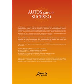 AUTOS para o sucesso é fruto de uma profunda reflexão espiritual e busca por conhecimento sobre a vida, as pessoas, o universo, os acontecimentos, nossos caminhos e escolhas, e representa uma grande vontade de compartilhar com mais pessoas um pouco do meu conhecimento, bem como alguns exercícios que me ajudaram no meu próprio processo de autoconhecimento e de mudança interna, e que me trouxeram a este momento de reflexão e partilha. Marca, também, o momento em que descobri e decidi abraçar meu verdadeiro propósito de vida: compartilhar meu conhecimento de mundo, dos livros, dos cursos e espiritual para ajudar a transformar outras vidas. Espero que você aprecie esta leitura sobre os 5 AUTOS essenciais para uma pessoa de sucesso: AUTOCONHECIMENTO: a chave para a mudança. AUTOACEITAÇÃO: a mola propulsora da mudança. AUTOESTIMA: os resultados da mudança. AUTODESENVOLVIMENTO: tomando as rédeas da própria vida. AUTORREALIZAÇÃO: a busca final pela vida plena e feliz. A partir das temáticas propostas nos capítulos, você irá refletir sobre as principais informações e assimilar o que for importante para o seu momento, para a sua jornada e para a sua vida, a fim de ser ainda mais pleno(a) e feliz.