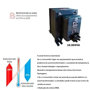 Fusível Térmico: Se ligar um equipamento que exceda a potência do autotransformador, o aumento da temperatura próximo a 130C faz o fusível desligar o equipamento. Quando a temperatura baixar próximo a 70C ele volta a funcionar.
