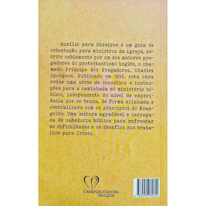 Sinopse Auxílio para Obreiros é um guia de orientação para ministros da igreja, escrito sabiamente por um dos maiores pregadores do protestantismo inglês, o chamado Príncipe dos Pregadores, Charles Spurgeon. Publicado em 1896, esta obra reúne uma série de conselhos e instruções para a caminhada no ministério bíblico, independente do nível de experiência que se tenha, de forma alinhada e centralizada com os princípios do Evangelho. Uma leitura agradável e carregada de sabedoria bíblica para enfrentar as dificuldades e os desafios nos trabalhos para Cristo.