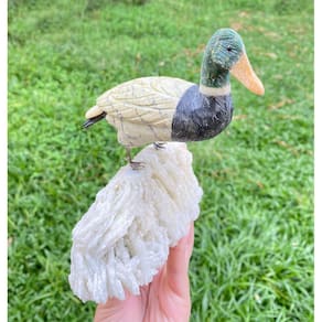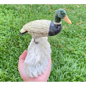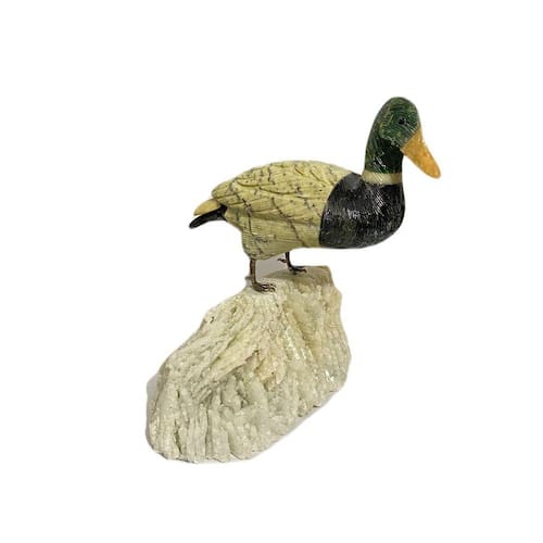 Amostra de Ave esculpida artesanalmente em pedra semipreciosa natural (minerais variados).