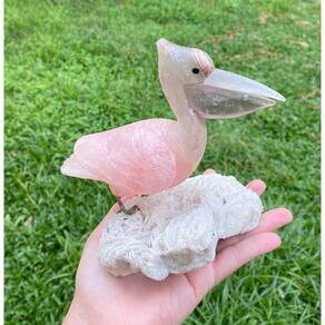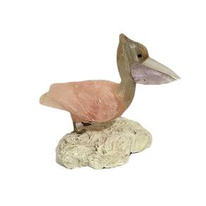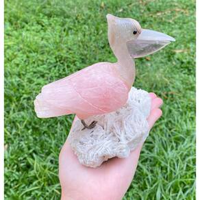 Amostra de Ave esculpida artesanalmente em pedra semipreciosa natural (minerais variados).