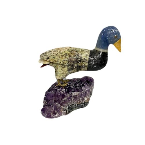 Amostra de Ave esculpida artesanalmente em pedra semipreciosa natural (minerais variados).