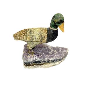 Amostra de Ave esculpida artesanalmente em pedra semipreciosa natural (minerais variados).