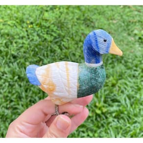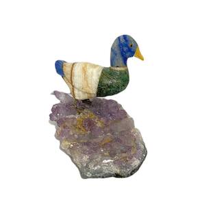 Amostra de Ave esculpida artesanalmente em pedra semipreciosa natural (minerais variados).