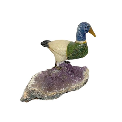 Amostra de Ave esculpida artesanalmente em pedra semipreciosa natural (minerais variados).