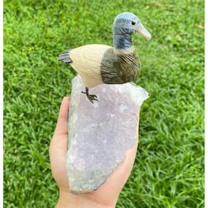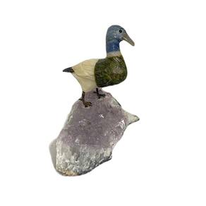 Amostra de Ave esculpida artesanalmente em pedra semipreciosa natural (minerais variados).