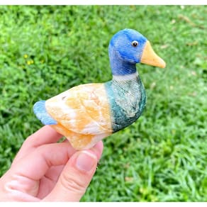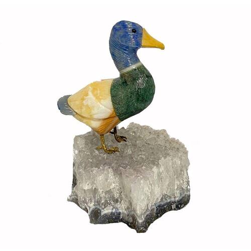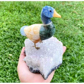 Amostra de Ave esculpida artesanalmente em pedra semipreciosa natural (minerais variados).
