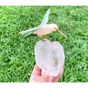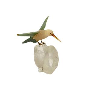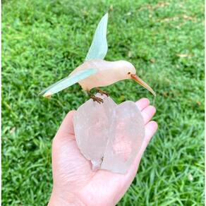 Amostra de Ave esculpida artesanalmente em pedra semipreciosa natural (minerais variados).
