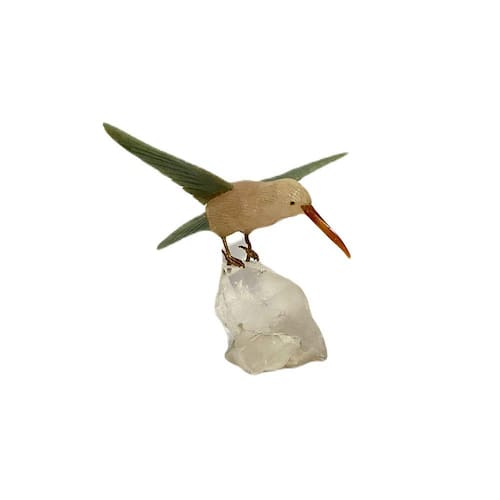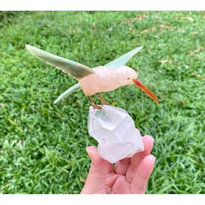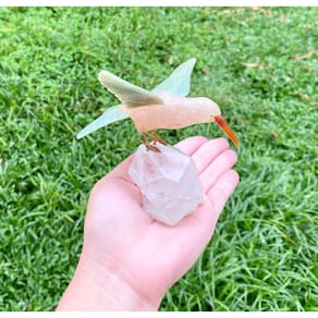 Amostra de Ave esculpida artesanalmente em pedra semipreciosa natural (minerais variados).