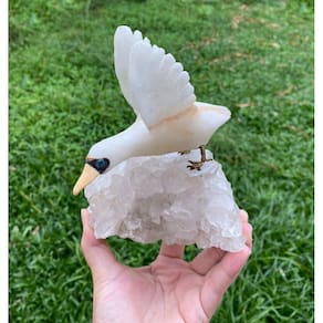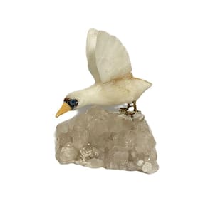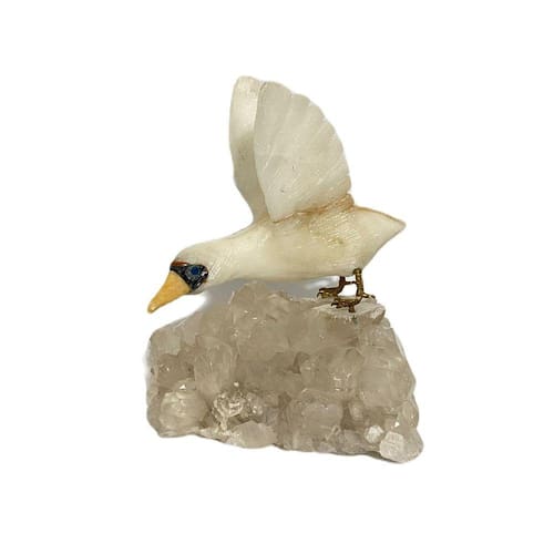 Amostra de Ave esculpida artesanalmente em pedra semipreciosa natural (minerais variados).