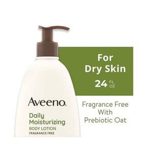 Aveeno Daily Moisturizing 709ml Hidratação Corporal 24 Horas A Loção Corporal Hidratante Diária Aveeno com fórmula de Aveia Prebiótica nutre intensamente a pele seca. Formulada com aveia prebiótica , a loção sem fragrância tem hidratação clinicamente comprovada que dura 24 horas. Esta loção corporal diária nutre e ajuda a repor a barreira natural de hidratação da pele. A fórmula única de aveia prebiótica é rapidamente absorvida e nutre a pele seca com hidratação, deixando a pele macia, bonita e com aparência saudável. A fórmula suave da Loção Hidratante Diária Aveeno não contém fragrâncias, parabenos ou corantes. Testada contra alergias e não é oleosa, não comedogênica e é suave o suficiente para uso diário como parte de uma rotina regular de cuidados com a pele e beleza. Para usar, aplique diariamente quantas vezes for necessário. Aveeno Loção Corporal Hidratante Diária com aveia prebiótica nutre intensamente a pele seca Loção suave, adequada para peles sensíveis, possui hidratação clinicamente comprovada que dura 24 horas. A loção corporal hidratante nutre e ajuda a repor a barreira natural de hidratação da pele Apresentando uma fórmula de rápida absorção que deixa sua pele macia, bonita e com aparência saudável Garrafa feita com 30% de plástico reciclável.