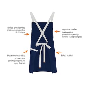 Avental corpo inteiro com alças cruzadas nas costas e bolso frontal. Este modelo de avental com alças cruzadas é ideal para aliviar o pescoço durante o uso prolongado. Possui detalhe decorativo e funcional ao lado do bolso, perfeito para pendurar pano de prato. Feito para chef de cozinha, barista, jardinagem, pintura e outros. Este avental atende bem aos clientes mais exigentes priorizando conforto, qualidade e estilo. Produzido em tecido 100% algodao, facil de lavar e indicado para uso na maquina de lavar roupa.