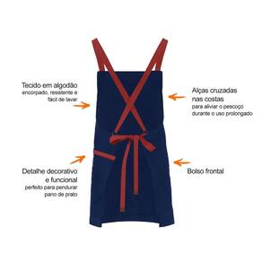 Avental corpo inteiro com alças cruzadas nas costas e bolso frontal. Este modelo de avental com alças cruzadas é ideal para aliviar o pescoço durante o uso prolongado. Possui detalhe decorativo e funcional ao lado do bolso, perfeito para pendurar pano de prato. Feito para chef de cozinha, barista, jardinagem, pintura e outros. Este avental atende bem aos clientes mais exigentes priorizando conforto, qualidade e estilo. Produzido em tecido 100% algodao, facil de lavar e indicado para uso na maquina de lavar roupa. Contem: 10 Aventais Unissex Tamanho: 76 x 66 cm Material: 100% Algodao CASACHA especializada em aventais e jogos americanos profissionais Marca: CASACHA