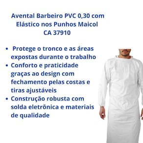 Garanta já seu Avental Barbeiro PVC 0,30 com Elástico nos Punhos Maicol CA 37910 e proteja-se com qualidade e conforto em seu ambiente de trabalho!