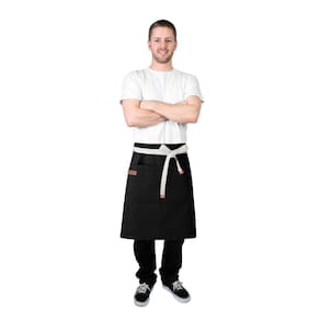 Avental de cintura e bandana. Ajustavel na cintura, atraves das tiras para amarrar e bolso frontal. Ideal para chef de cozinha, barista, jardinagem, pintura e outros. Este avental é pratico, basico, veste bem e facil de lavar. O avental profissional da Casacha atende bem aos clientes mais exigentes priorizando conforto, qualidade e estilo. O material sintetico nao é proveniente de origem animal.