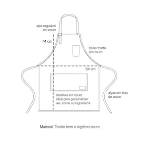 Avental corpo inteiro. Alça regulavel no pescoço e ajustavel na cintura e com bolsos frontais. Este avental atende bem aos clientes mais exigentes priorizando conforto, qualidade e estilo. Perfeito para bartender, garçom, confeiteiro, chef de cozinha e muito mais.