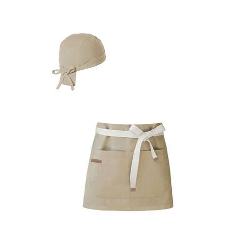 Avental de Cintura Bege e Bandana Algodao Cozinha Bar Vegano - Bege - Único