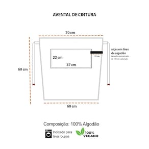Avental de cintura e faixa de cabelo. Ajustavel na cintura, atraves das tiras para amarrar e bolso frontal. Ideal para chef de cozinha, barista, jardinagem, pintura e outros. Este avental é pratico, basico, veste bem e facil de lavar. O avental profissional da Casacha atende bem aos clientes mais exigentes priorizando conforto, qualidade e estilo.