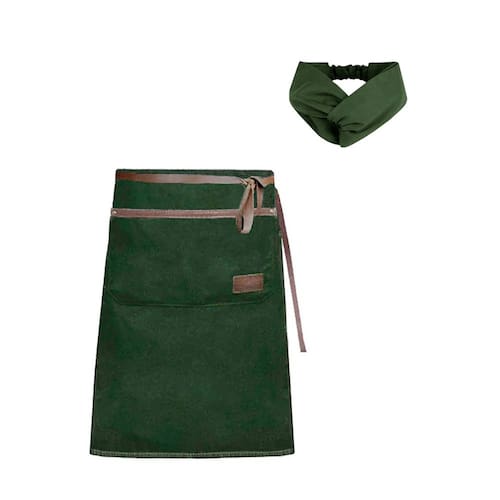 Avental de Cintura e Faixa Verde Couro Marrom Restaurante Bar