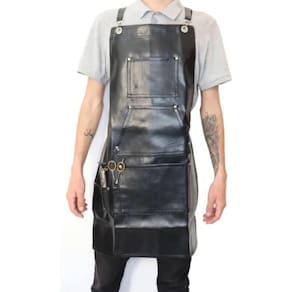 Avental Fabricado em Couro Sintetico , Não Gruda Cabelo , Fácil Limpeza , Alça Para Regulagem do Tamanho.