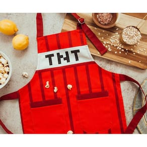 - OS BLOCOS DE CONSTRUÇÃO DE SUA PRÓXIMA CRIAÇÃO: Este avental padrão todo vermelho lembra o explosivo bloco TNT dos videogames. Uma opção perfeita para jovens entusiastas do Minecraft que querem ajudar na cozinha.