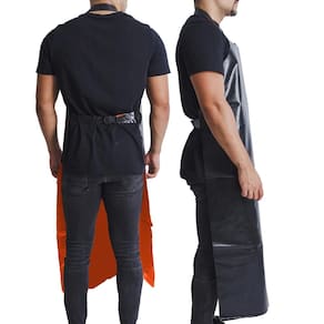 Confeccionado em Trevira, um material conhecido por sua resistência, este avental oferece uma barreira eficaz contra respingos de água e produtos químicos domésticos. Ele possui revestimento de PVC em ambas as faces. A cor preta no lado externo e laranja no lado interno proporciona um visual profissional e moderno.
