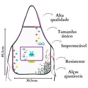 Descrição do produto : O Avental Escolar Decorado Game da Leonora é ideal para tornar as atividades infantis mais divertidas e criativas. Produzido em plástico resistente, ele protege as roupas das crianças durante trabalhos manuais, pintura e outras tarefas. Seu material é impermeável, fácil de limpar e oferece praticidade no dia a dia. Com cores vivas e estampas alegres, o avental estimula a imaginação e o envolvimento das crianças nas atividades escolares e recreativas. : Detalhes técnicos : Marca: LeoeLeo : Peso (kg) : 0,024 Comprimento Emb. (cm) : 13 Altura Emb. (cm) : 0,6 Largura Emb. (cm) : 11,8 -Formato: 49,5x39,5cm. : Detalhes: material de fácil limpeza. : Composição: Poliéster à prova de água. : -Contém 01 Unidade :
