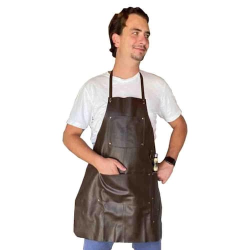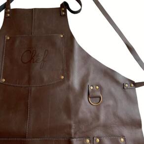 Avental Especial em COURO claro Churrasco - Feito No Brasil Avental Couro . Avental feito especialmente para fazer sucesso. Robusto e diferenciado. Junto com seu prazer em fazer churrasco, vocês farão sucesso. Detalhes: um porta faca , uma bolsa e um argola para pendurar toalhas ou luvas. Unissex, tamanho Único 74 cm x 57 cm Material: Couro podem ter variações de tons por ser um produto natural Combinando avental em couro marrom claro e detalhes em couro marrom escuro Marca: Utensilios do Chef