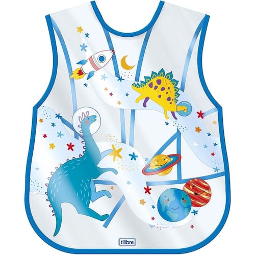 O avental escolar é um ótimo acessório para as crianças se divertirem sem o risco de se sujar. O produto, indicado para manter as roupas limpas durante tarefas manuais com tinta e massinha, conta com bolso interno e amarração dupla nas costas. O avental escolar Tilibra tem estampas alegres e é super prático de lavar.