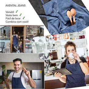 Avental corpo inteiro em jeans com bolso. Alça regulavel no pescoço e ajustavel na cintura, atraves das tiras em jeans para amarrar, bolso frontal. Ideal para chef de cozinha, barista, jardinagem, pintura e outros. Este avental atende bem aos clientes mais exigentes priorizando conforto, qualidade e estilo.