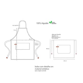 Contem: 1 Avental de Cintura P Tamanho: 64 x 44 cm 1 Avental Corpo Inteiro Tamanho: 76 x 64 cm Material: 100% Algodao Marca: CASACHA