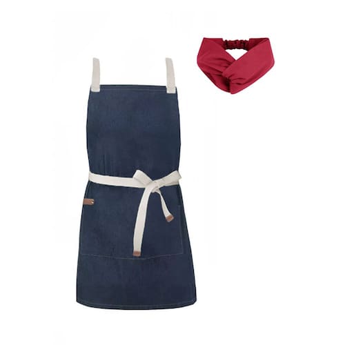 Avental Jeans e Faixa Cozinha Vermelha Restaurante Bistro - Vermelho