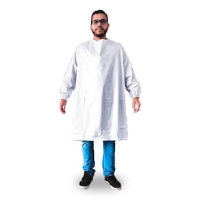 Avental de segurança confeccionado em PVC com forro de poliester com manga longa.
