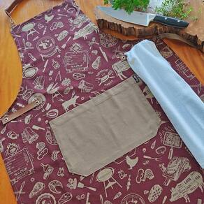 EspecificaçõesTipo de Produto: Avental para churrasqueiros, chefs e gastrônomos - Tecido: Tecido em sarja leve 100% algodão com acabamento Easy Clean, que facilita a limpeza, garante mais durabilidade e repele pequenas quantidades de líquidos. - Cor: Vinho- Medidas do avental adulto: 65 x 85cm.- Acabamento fino com ilhós, mosquetões e rebites.- Alças reguláveis em couro sintético com ajuste de altura se adequando a qualquer pessoa.- Alças para prender o pano nas laterais em couro sintético.- Bolso em tecido.- Venda somente de 01 unid do avental adulto. Os outros itens mostrados na foto não fazem parte da venda. Cuidados:- O uso inadequado e o contato da peça com superfície abrasiva podem provocar formações de pilling.- Lavar separadamente cores contrastantes e na temperatura indicada.- Não esfregar ou remover manchas de apenas uma parte da peça. Sempre lavar ou limpar toda a peça.- Nunca use qualquer produto químico. Use sempre água sabão e detergente neutro.Guia de lavagem:- Temperatura máxima de lavagem até 40C em processo normal.- Não alvejar.- Temperatura máxima da base de ferro 110C não utilizar vapor.- Não limpar a seco, não remover manchas com solvente.- Possível secagem em tambor temperatura de exaustão máximo 60C Sobre a VivaINA VivaIN atua em Londrina oferecendo sempre o que há de melhor em conforto e qualidade em produtos de decoração. Com atelier próprio e sempre atenta às maiores tendências, confeccionamos os produtos de acordo com o seu projeto, como cortinas, colchas, edredons, porta travesseiros, almofadas, enxovais completos adulto e infantil , papel de parede, jogos americanos, toalhas de mesa, etc.Nossa principal proposta é levar para dentro do seu lar sensações e bem-estar. Marca: Vivain Decorações