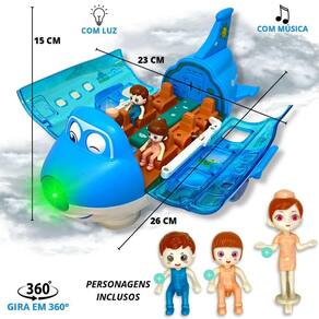 O avião possui personagens interativos, que permitem dar asas a imaginação, estimulando cenários e situações, juntamente com suas luzes coloridas e sons ,mantém as crianças entretidas com muita animação.