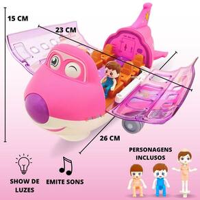 O avião possui personagens interativos, que permitem dar asas a imaginação, estimulando cenários e situações, juntamente com suas luzes coloridas e sons ,mantém as crianças entretidas com muita animação.