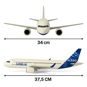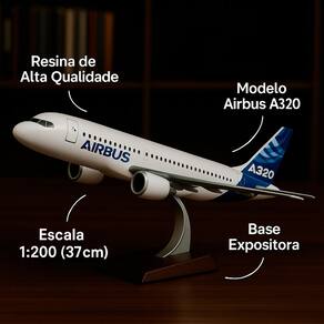 Modelo: Airbus A320 Escala: 1:200 (aproximadamente 37,5 cm de comprimento e 34 cm de envergadura) Material: Resina de alta qualidade Base expositora inclusa Design com pintura oficial e acabamento refinado