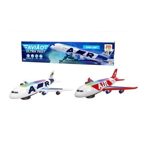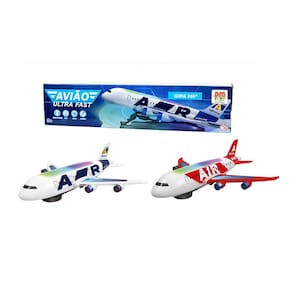O avião Ultra Fast bate e volta é muito legal. Ele tem luz, som, mecanismo bate e volta e também gira 360º.Bate e volta, Brinquedo com luz, Brinquedo com movimento, Brinquedo com somIDADE RECOMENDADA: Acima de 03 (três) anosCONTEÚDO DA EMBALAGEM: 01 brinquedo Avião Ultra Fast (desmontado)OUTRAS INFORMAÇÕES: Com luz e somBate e voltaUtiliza 3 pilhas "AA" (não incluídas)Tamanho: 35 cmComposição: Plástico ABS, PP Marca: Não Informado
