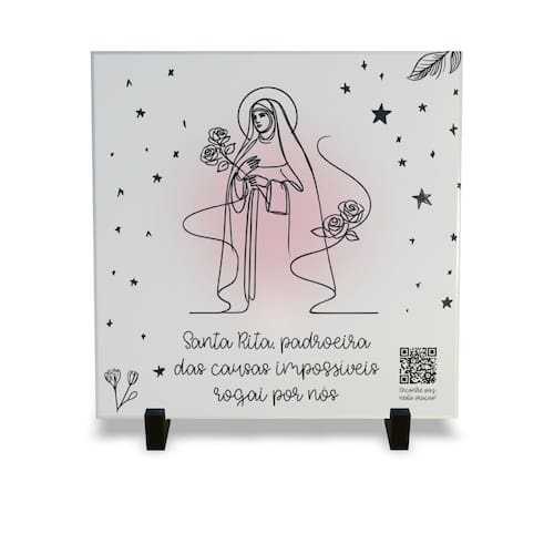 Azulejo Personalizado Coleção Religiosa Com QR Code Oracões - Santa Rita