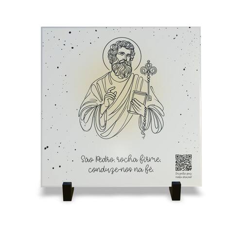 Azulejo Personalizado Coleção Religiosa Com QR Code Oracões - São Pedro