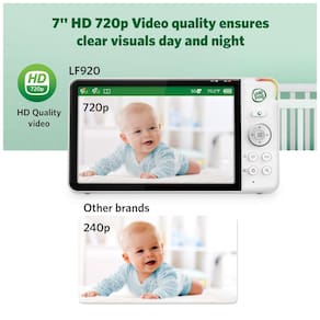 Monitor 720p de alta definição de Admire uma visão detalhada de seus preciosos pequeninos exibidos graciosamente na tela de alta definição de e 720p com cores e ângulos de visão de primeira. A tecnologia avançada de visão noturna que é superior à tecnologia tradicional preto e branco permite que você veja claramente seu bebê em luz ultrabaixa. Monitor de panorâmica e inclinação de 360 graus Com nosso monitor, você tem controle total sobre como vê seu bebê usando os recursos de panorâmica e inclinação da lente grande angular integrada. Luz noturna adaptável e regulável Nossa luz noturna se ajusta automaticamente ao brilho do ambiente. É regulável por um toque na unidade do bebê. Também pode ser controlado remotamente a partir da unidade dos pais. Sensor de umidade de temperatura preciso Com precisão aprimorada e resolução de 0,1 , ajude a criar o ambiente de sono perfeito para seu bebê. O termômetro embutido e o sensor de umidade medem com precisão as condições ambientais do seu bebê e o alertarão instantaneamente na unidade dos pais quando a temperatura ambiente estiver fora da faixa confortável. Bateria recarregável de longa duração Sinta se confiante de que pode monitorar seus pequenos o dia todo. Nossa bateria integrada de 5000mAh alimenta até 15 horas de streaming de vídeo e dura 22 horas apenas com áudio. Espere, há mais recursos excelentes Desfrute de longo alcance Monitore até 304 m, mantenha se conectado com intercomunicador bidirecional, receba alertas de detecção de movimento e som, escolha entre sons suaves e canções de ninar. Além disso, oferecemos uma configuração simples com o sistema PlugPlay e desfrute de monitoramento sem preocupações com uma transmissão segura e privada, sem necessidade de WiFi