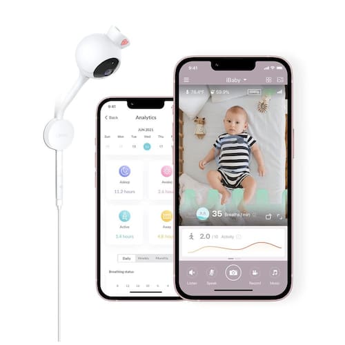 Alertas de IA de segurança o monitor de respiração i2 bebê alerta se houver a possibilidade de o bebê ter o rosto coberto ou rolar, se estiver chorando ou se o seu filho tiver movimentos fracos ou intensos. Possui áudio bidirecional, alertas de temperatura, umidade ambiente. O iBaby oferece aos usuários zenamento em nuvem para alertas de foto, vídeo 300 fotos e 100 videoclipes de 15 segundos, para que você possa voltar para verificar o que aconteceu.