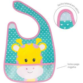 O babador Animal Fun da Buba é ideal para a hora da papinha. Foi desenvolvido com tecido impermeável e bolso cata-migalhas para maior praticidade na hora da limpeza e proteção do pequeno, pois evita molhar ou sujar a roupinha. Possui abertura lateral que facilita na hora de colocar e tirar.
