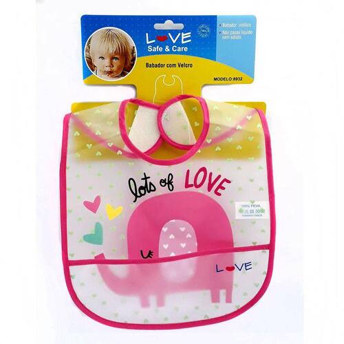 O babador Love de Vinílico, popularmente conhecido como babador de plástico é muito prático e fácil de limpar.