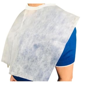01 um Pacote de Babador Descartável Tnt Com Tiras Branco 30g Pct 100 unidsResistente, não libera fiapos. É antialérgico, atóxico e não inflamável.Cores: BrancoTamanho único - 50cm x 40cmExcelente para consultório médico e de dentista, estética, maquiagem, salão de beleza,Restaurantes e para uso familiar, para idosos e crianças.