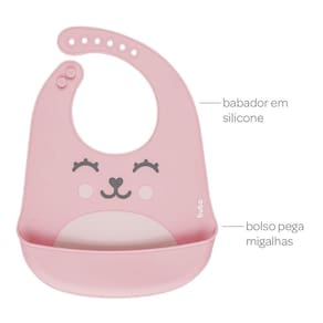 Babador impermeavel avental alimentação infantil bebes de silicone com pega migalhas Cor: rosa claro O babador de silicone da buba e super prático e higiênico. Possui bolso pega migalhas, ideal para proteger a roupinha do bebe. O fecho com botões se ajusta facilmente ao pescoço do pequeno.